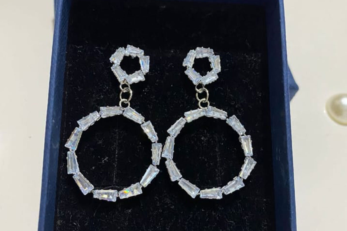 Çelik Baget Taşlı Yuvarlak Küpe