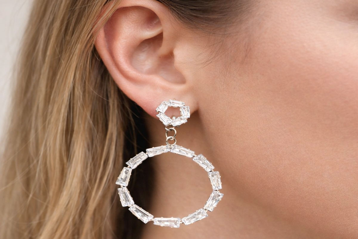 Çelik Baget Taşlı Yuvarlak Küpe
