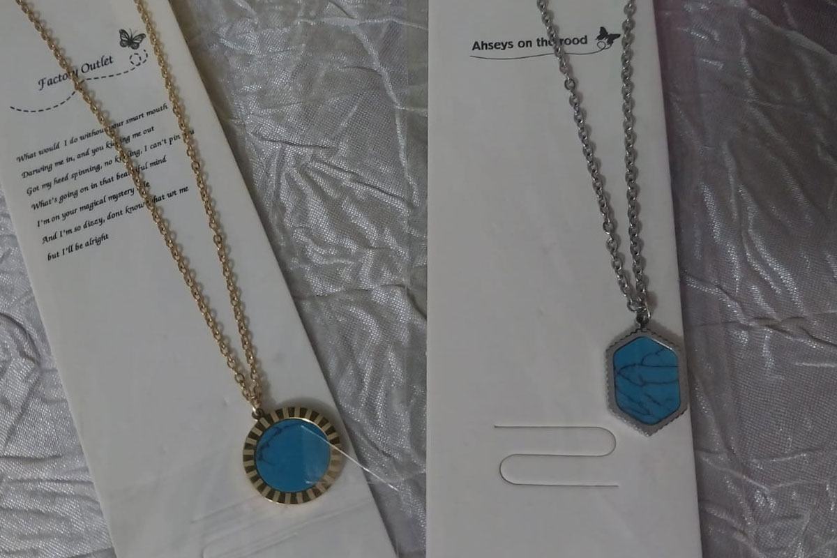 2 Adet Mavi Renkli Çelik Kolye