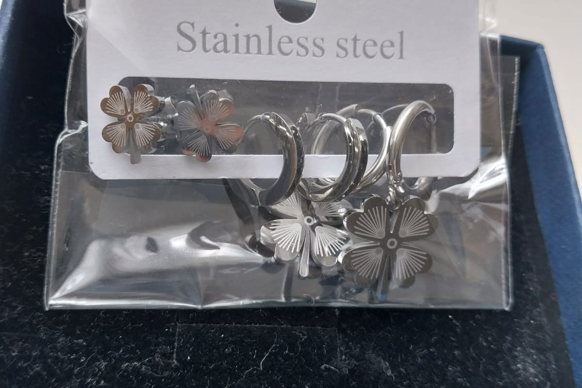 Gümüş Renk Yonca Modelli 6 lı Çelik Küpe